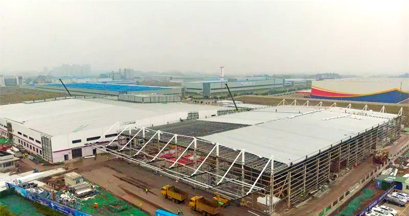 近日,四川內(nèi)江飲料生產(chǎn)基地廠房主體鋼構(gòu)已圓滿收工,目前正聚焦于外立面的施工細(xì)節(jié),同時(shí)展開(kāi)倉(cāng)庫(kù)屋頂頂棚鋼板的鋪設(shè)工作。